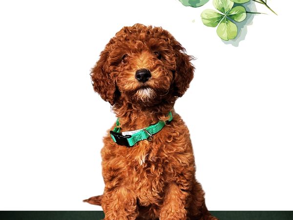 Dating to the 1700s, the Irish Setter is renowned for an elegant body, graceful gait, and bright mahogany coat. Doodles may have mahogany, rose, Merle, or other-colored coats.